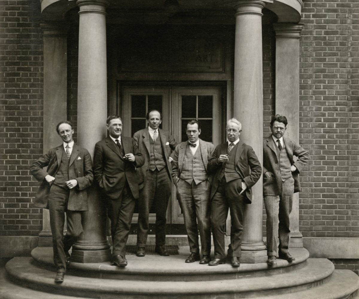 (L to R): J.E.H. MacDonald, J.W. Beatty, Arthur Lismer, Herbert H. Stansfield, A.Y. Jackson, Emanuel Hahn.